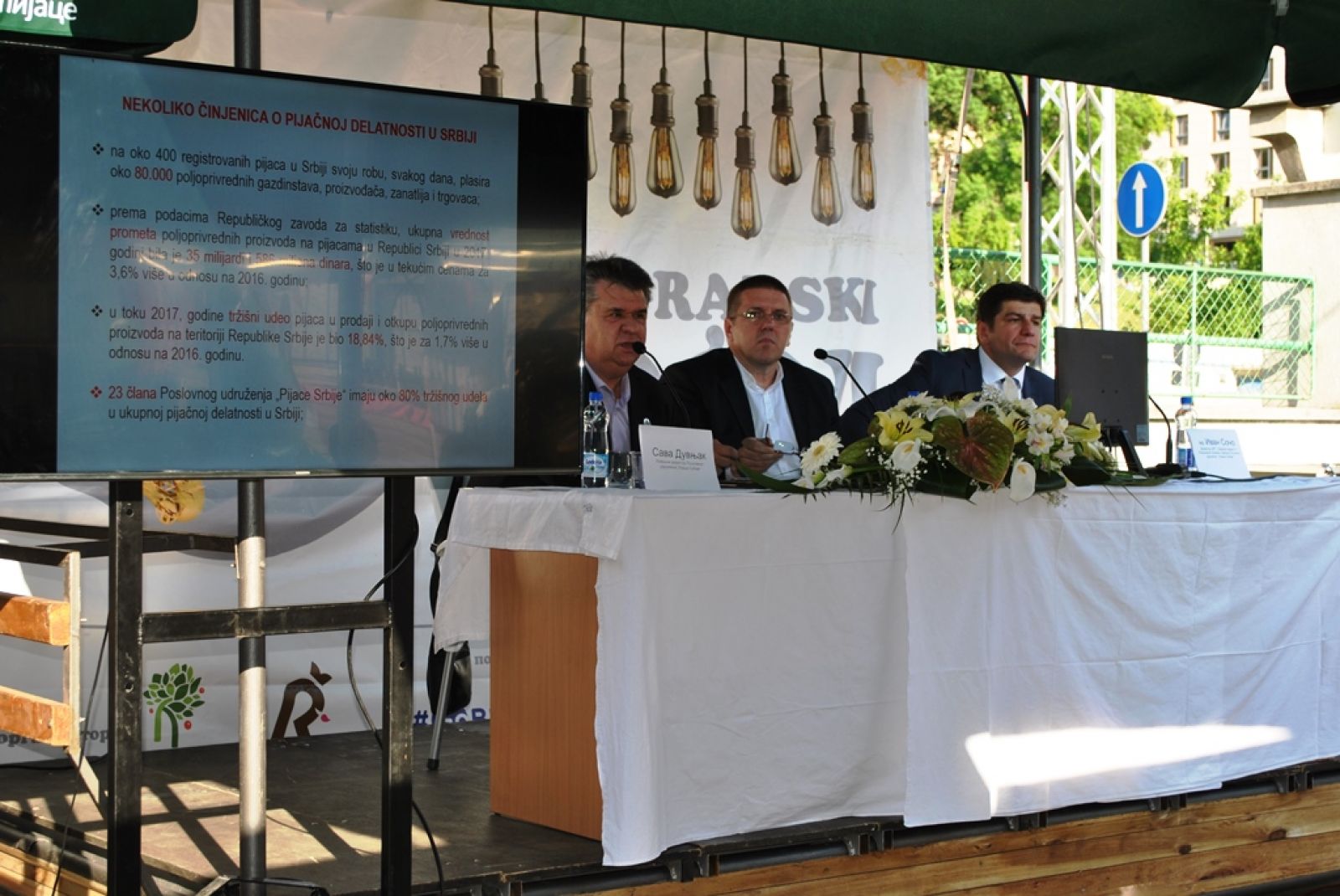 Na svečanoj sednici Skupštine Poslovnog udruženja “Pijace Srbije” je istaknuto da na 410 registrovanih pijaca u Srbiji dnevno svoju robu plasira oko 80.000 poljoprivrednih gazdinstava i preduzetnika, kao i da je ukupna vrednost prometa poljoprivrednih proizvoda na pijacama u prethodnoj godini bila 35 milijardi i 586 miliona dinara, što je u tekućim cenama za 3.6% više u odnosu na 2016. godinu. Tržišni udeo pijaca u prodaji i otkupu poljoprivrednih proizvoda na teritoriji Srbije u toku 2017. godine bio je18.84%, što je za 1.7% više u odnosu na 2016. godinu.